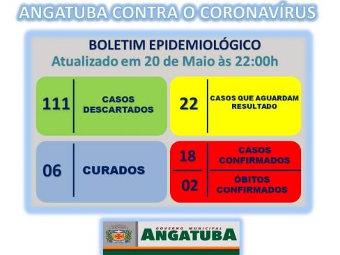 Hoje (21) subiu para 06 os casos curados, mais um caso foi confirmado nessa noite de quarta feira e sobe para 20 casos confirmados.