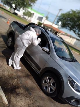 O CoronaBlitz é realizado em frente ao pelotão por medidas de segurança da equipe e profissionais da saúde e condutores de veículos. Lembrando que as visitas sanitárias nos estabelecimentos estão ocorrendo normalmente durante a semana com os fiscais sanitários e de postura conforme cronograma estabelecido.