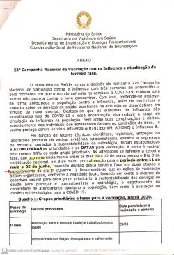 Segue informação de nova orientação sobre a Campanha Influenza com CANCELAMENTO do dia "D" no sábado dia 9 de maio.