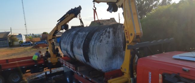 O Secretário salientou a necessidade de utilizar dois guinchos para a retirada do tanque, pois o mesmo encontrava-se em lugar de grande risco.