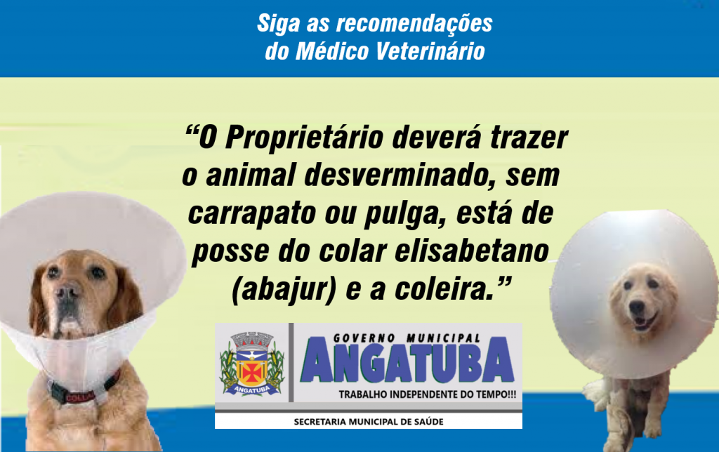 Siga as recomendações do Médico Veterinário – “O Proprietário deverá trazer o animal desverminado, sem carrapato ou pulga, está de posse do colar elisabetano (abajur) e a coleira.”