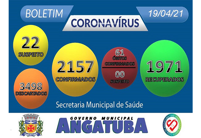 A Secretaria Municipal de Saúde através da Vigilância Epidemiológica divulgam o resultado do Coronavírus em Angatuba.