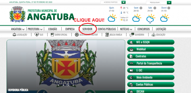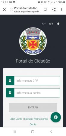 2º PASSO acessar SERVIDOR http://servicos.angatuba.sp.gov.br/portalcidadao/#!/login.